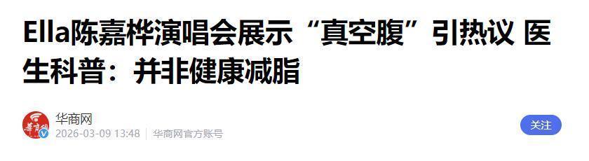 编辑|林轻吟       如今的演唱会舞台越来越让人看不懂,不少艺人靠出格造型与大胆动作博眼球。       45岁的Ella瘦到肋骨外翻,舞台上刻意拽裤腰露小腹,短裤短到近乎走光。       这是怎么回事?       新年复工后的演唱会舞台,本应是星光熠熠、实力绽放的地方,可部分艺人的表现,却让观众直呼“没眼看”,尴尬与油腻扑面而来,彻底丢掉了艺人该有的专业底线。       陈松伶以歌唱大赛冠军身份出道,本是科班出身的实力派,可在香港的个人演唱会上,却全程状况百出。       她邀请丈夫张铎同台助阵,本是夫妻情深的温馨桥段,却被演绎成尴尬舞台剧。       张铎从背后含情凝望,陈松伶突然转身默契不足,两人仓促准备跳拉丁舞,动作生硬毫无美感,没有甜蜜只有违和。       本应自然的拥抱变成刻意的舞蹈,中年人的肢体僵硬尽显,左摇右晃的舞步毫无技术含量,反而充满滑稽感。       后续陈松伶从背后环抱丈夫、抬腿倚靠的动作,更是让观众感受到满满的油腻,毫无艺术美感可言。       比舞台表演更让人失望的是她的业务能力,曾经的歌唱冠军如今唱功大不如前。       现场演唱大白嗓明显,歌词模糊不清,甚被网友直言“简直是噪音”,彻底辜负出道时的天赋。       她的舞台造型更是灾难级翻车,毛茸茸长裙衬得身形臃肿,被调侃像“座山雕”。       55岁年纪硬穿天蓝色洛丽塔裙,甜美风格与自身气质格格不入,宛如cos巴拉拉小魔仙。       铆钉流苏皮衣搭配超短裤子,风格怪异,与丈夫同台的黑色开叉裙,开叉至大腿略显低俗。       每一套造型都踩在审美雷点上,完全不懂适合自己才是最好的时尚。       无独有偶,Ella在西安巡回演唱会的表现,同样迷惑行为不断,刷新观众认知。       作为曾经的“假小子”,她尝试淑女造型本是突破自我,白色公主裙仙气十足,蓝色鱼尾裙尽显温柔。       可过于消瘦的身材让她撑不起服装,肩膀空洞、腰部褶皱,美感大打折扣。       她在舞台上的即兴操作,更是让人摸不着头脑,唱跳途中突然跪地,像是在cos兵马俑,神情严肃一动不动,与歌曲氛围完全割裂,突兀又尴尬。       更让人意外的是,她直接把biangbiang面端上舞台,当着全场观众的面吃面,虽然是贴合当地特色,可更像是刻意博眼球。       后续的炸裂造型更是越界,短到极致的裤子、单薄的上衣,让她近乎走光。       为展示真空腹,刻意拽裤边、收腹露肋骨,动作大胆却毫无美感,反而让观众觉得不适、吓人。       本该以歌声和舞台魅力取胜的演唱会,变成了尴尬行为大赏。       如果说中年艺人的舞台是尴尬油腻,那顶流女团BLACKPINK的演唱会,则是尺度越界,放飞自我,尤其是Lisa,更是争议拉满。       作为全球顶流女团成员,Lisa本是唱跳俱佳、时尚感拉满的偶像,可在决定参加疯马秀后,她的舞台风格彻底跑偏。       疯马秀以脱衣舞表演为核心,与偶像身份相悖,而Lisa不仅主动参与,积极彩排,风波后首次登上韩国安可场舞台,依旧毫无收敛,造型与表演尺度一再突破底线。       演唱会上,她成为全团布料最少的成员,粉色两截式造型大面积露腰露腿,全然不顾偶像该有的端庄。       表演过程中,她更是过于“积极”,其他成员安静准备演唱时,她独自走到高处扭腰摆胯博关注。       个人舞台环节,她彻底放飞自我,趴地、塌腰、跪躺等动作轮番上演,穿着短裙却毫无顾忌。       队友Jennie同样深陷争议,参演美剧时出演大尺度戏份,被贴上负面标签。       两人的行为看似是追求个性,迎合欧美市场,实则是在消耗自身形象。       要知道,偶像的意义在于传递正能量,用实力与品格引领粉丝,可Lisa等人却把大胆当个性,把越界当自由,主动跳入争议漩涡。       即便粉丝极力洗白,也难以改变外界的负面印象,疯马秀表演者、尺度无底线,成了她们撕不掉的标签。       更让人担忧的是,这些顶流偶像拥有大量未成年粉丝,她们的一言一行都被粉丝看在眼里,记在心里。       过度放飞、尺度越界的舞台表演,会潜移默化影响未成年人的价值观。       让他们误以为博眼球、无底线才是流量密码,误以为大胆越界就是个性自由,这种负面引导,远比舞台失误更可怕。       她们都忘记了,舞台的核心是“表演”,艺人的底气是“专业”。       观众走进演唱会,是为了听动人的歌声,看精彩的舞蹈,感受艺术的魅力,而不是看中年艺人尴尬油腻的互动,不是看偶像无底线的尺度表演。       当艺人把舞台变成哗众取宠的秀场,当表演只为流量不为艺术,就算话题度再高,也只会换来观众的反感与抵触。